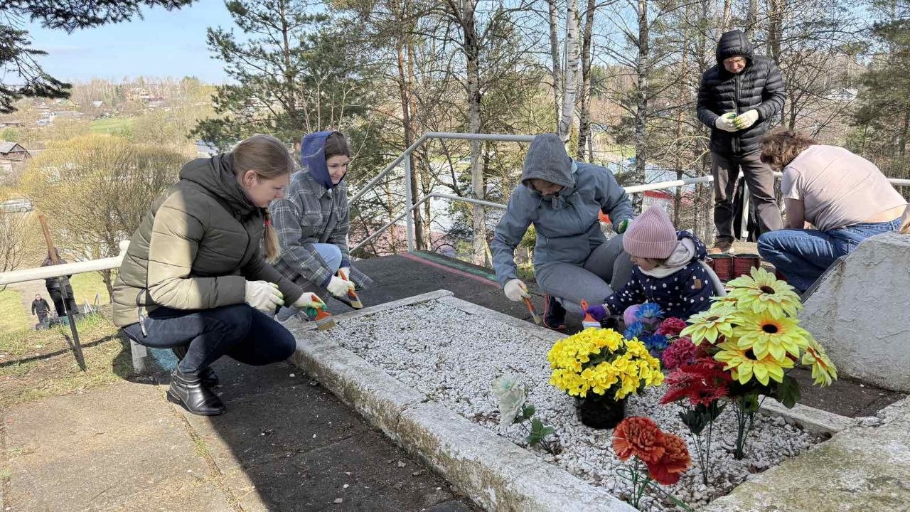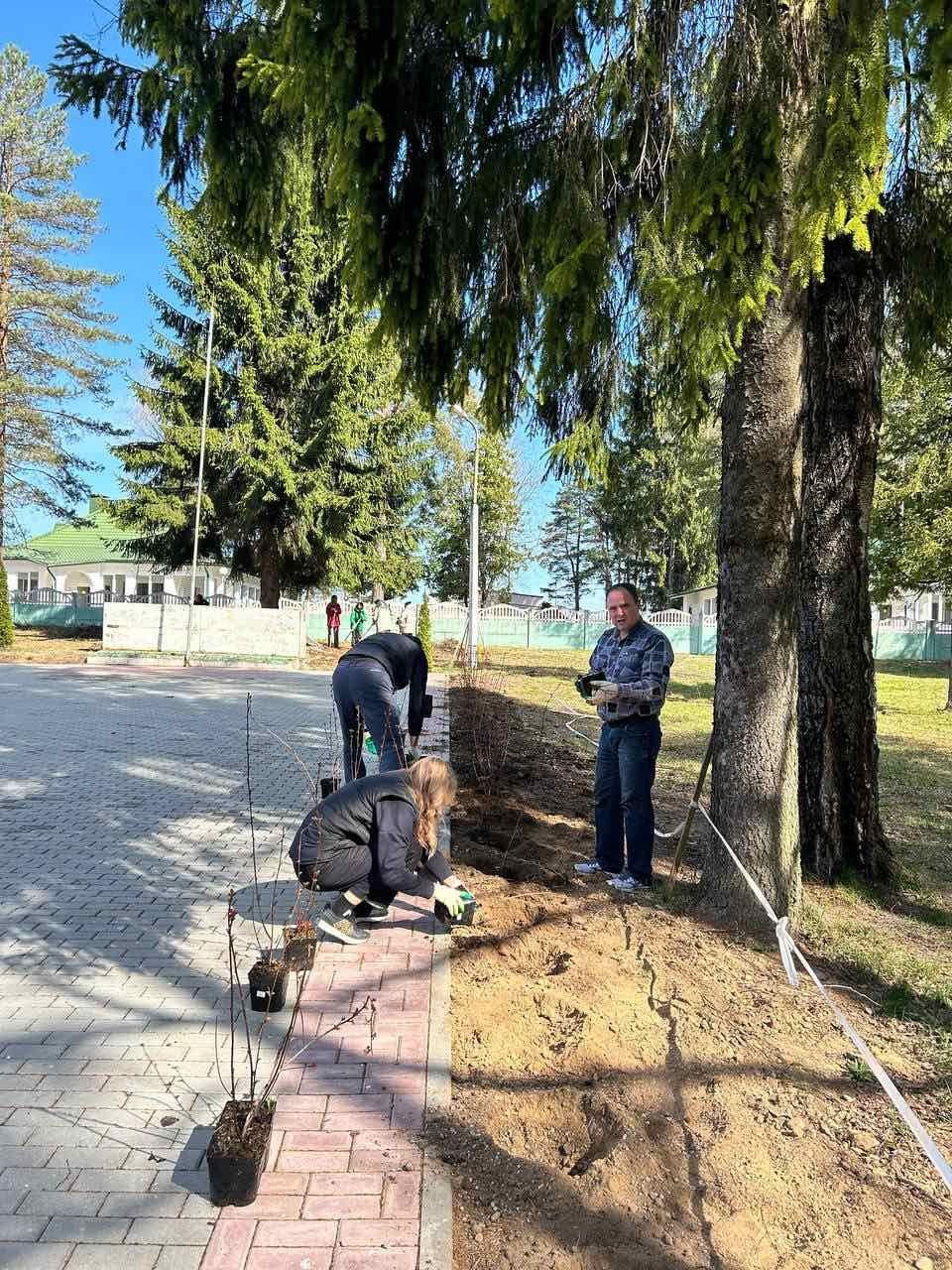 проведено эстетическое обновление территории у памятника Неизвестному солдату и высажена живая изгородь из декоративных кустарников.