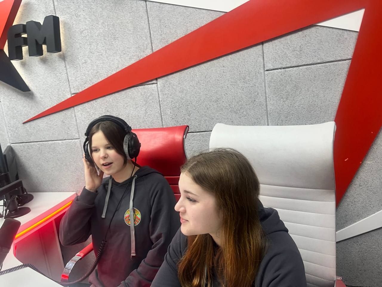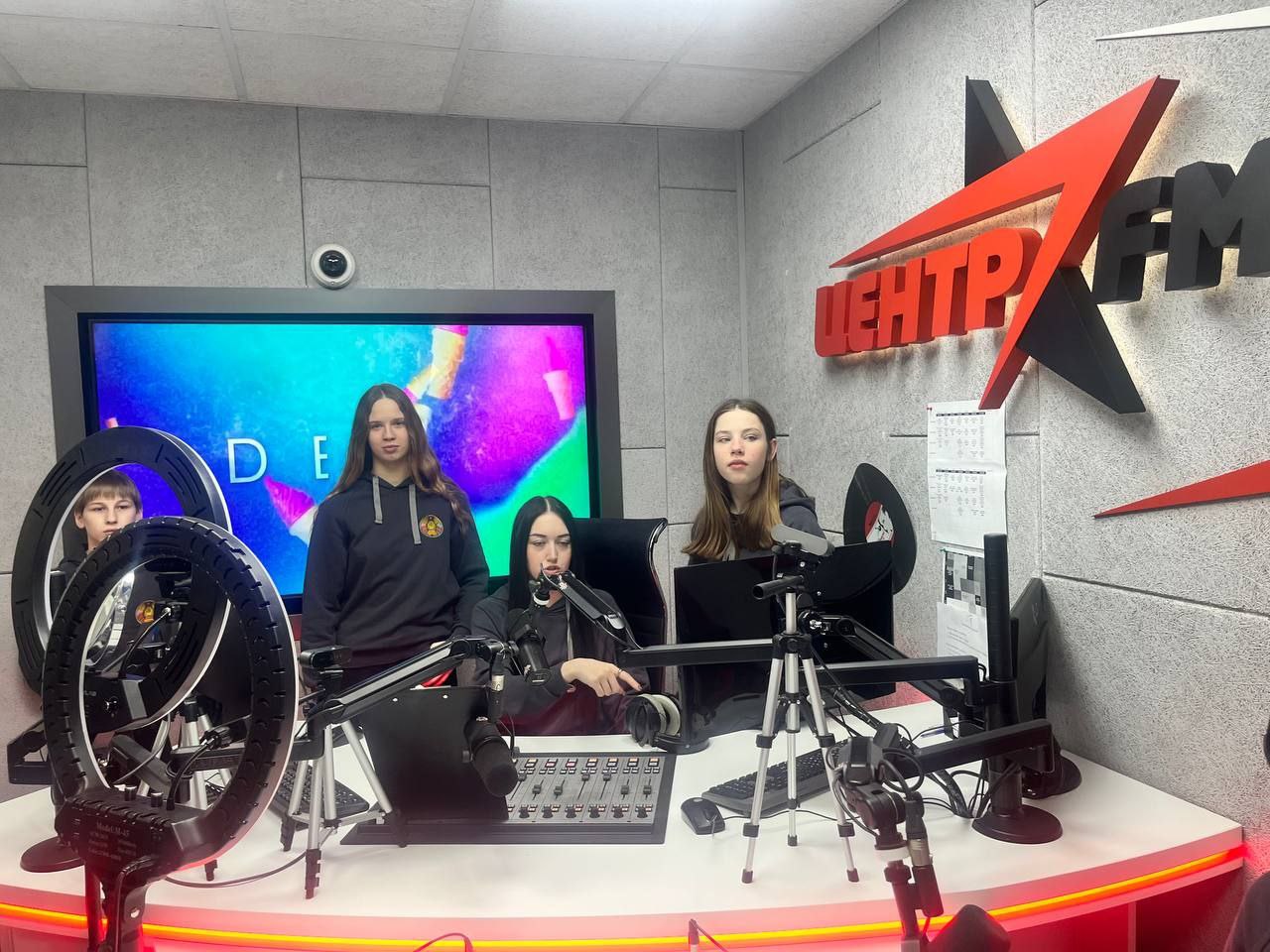 🔸Сделав фото на память, мы отправились на радио, их офис также на территории медиахолдинга. Доброжелательные сотрудники радиостанции «Центр FM» с удовольствием рассказали нам о своей работе. Наши ребята убедились: работа в кадре требует такой же дисциплины и выносливости, как и большой спорт.